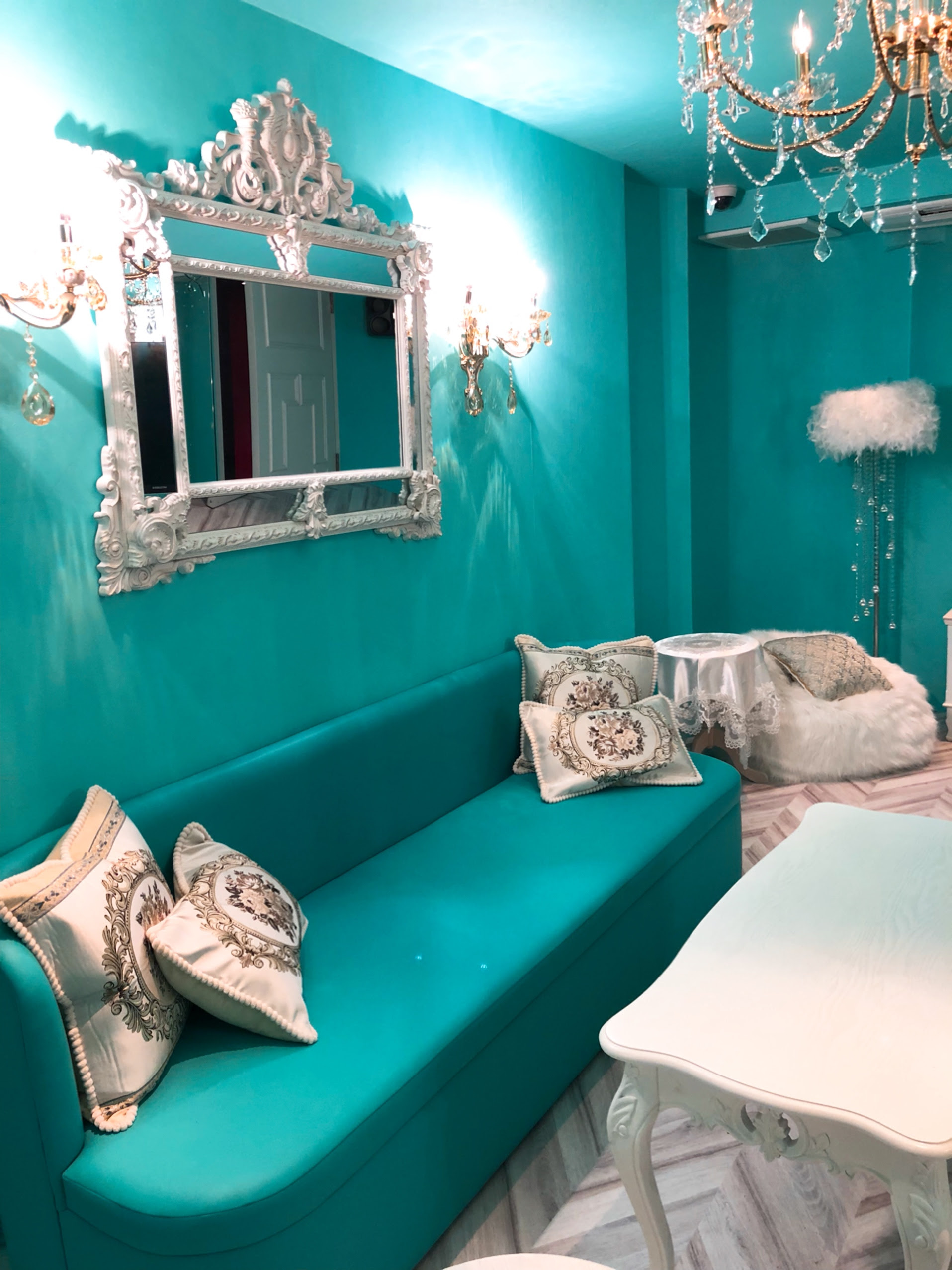 ティファニーブルーの壁紙を求めて 大阪 オンライン 売れるサロン空間づくり 狭小 古家 自宅空間を 新規顧客 リピーター増に繋がる繁盛店インテリアにリニューアル